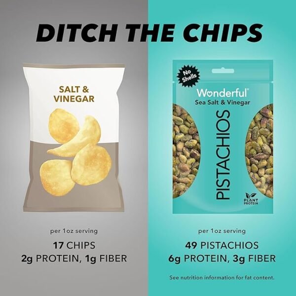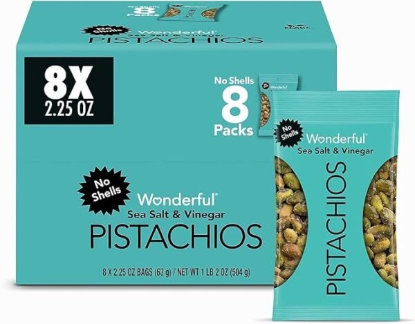 Home TODAY'S OFFER Wonderful Pistachios No Shells, Sea Salt & Vinegar Flavored Nuts, 2.25 Ounce Bag (Pack of 8), Protein Snacks, Gluten Free Snacks for Adults