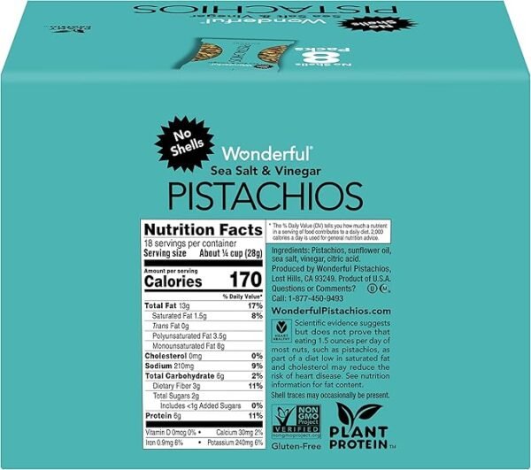 10 reviews for Wonderful Pistachios No Shells, Sea Salt & Vinegar Flavored Nuts, 2.25 Ounce Bag (Pack of 8), Protein Snacks, Gluten Free Snacks for Adults